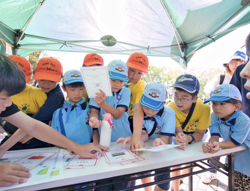 THE SCOUT EXPO ~川崎から世界へ~ をテーマに、国際委員会も合わせて合計12の各団がブースを運営。世界の国々の特徴や文化等に関連した各ブースを回って、ゲームなどを通じて交流し楽しく過ごしました。